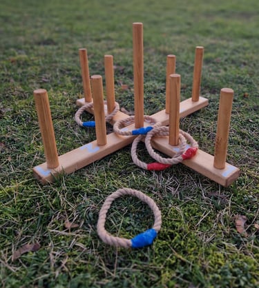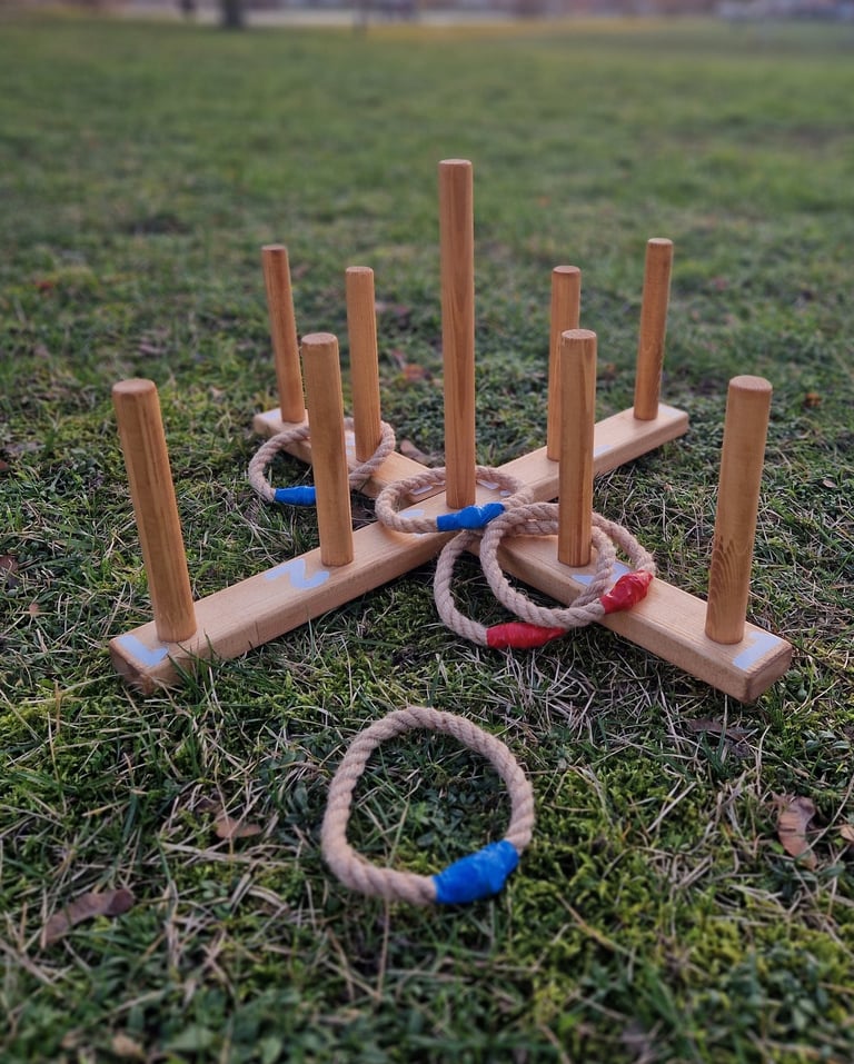 2. Tikslas – mesti žiedus ir pataikyti ant vertikalaus kuoliuko.