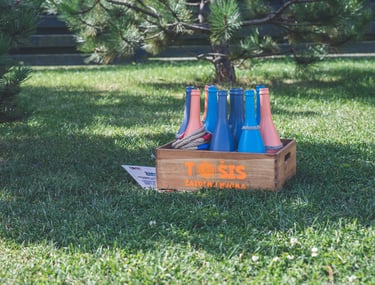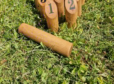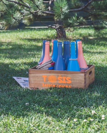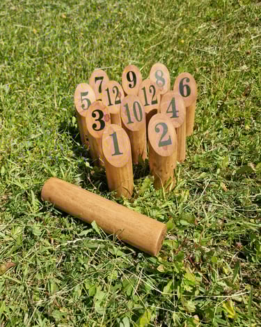 Komplektą „Azartas“ sudaro: Cornhole, XXL Jenga, Labirintas „Korys“, Ladder ball, Skylamūšis, Žiedynės, Molkky.