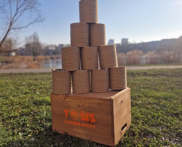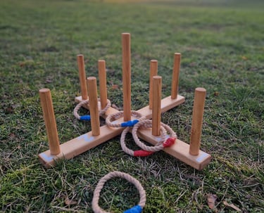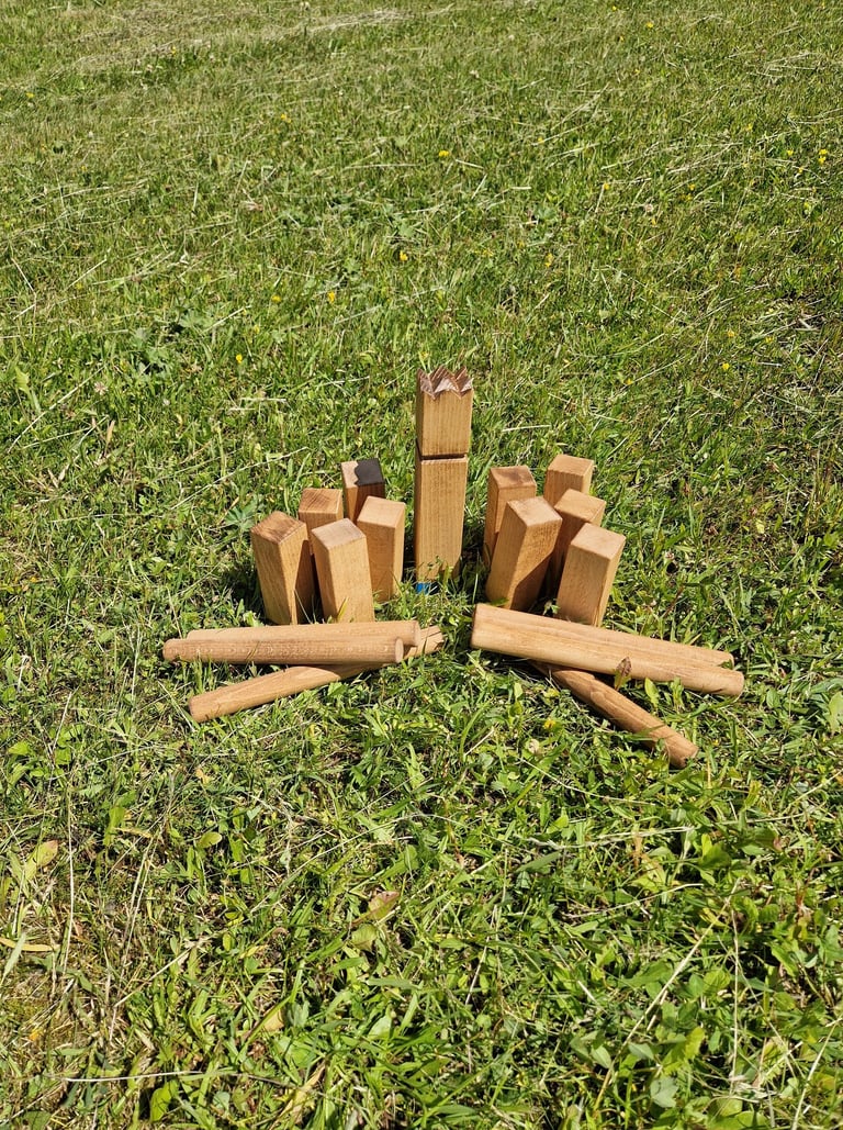 Komplektą „Fiesta“ sudaro: XXL Jenga, Labirintas „Korys“, Žiedynės, Molkky, Ladder ball, Skylamūšis, Conrhole, Vikingai ir Skardinmūšis.