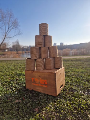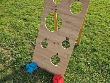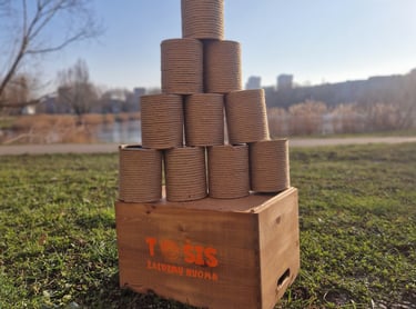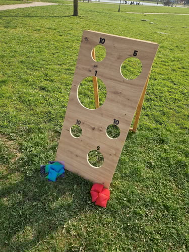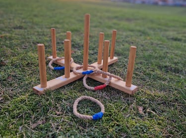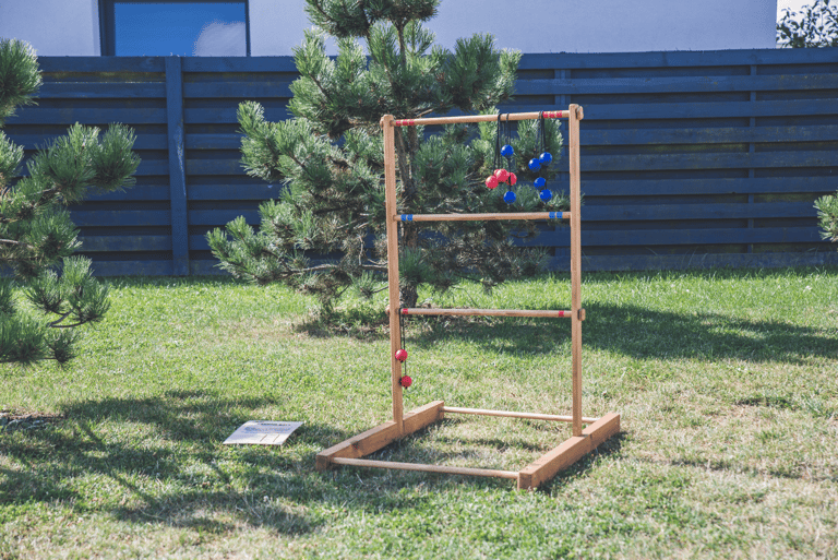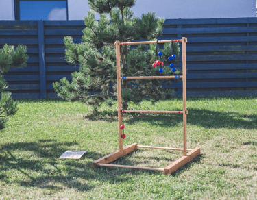 Komplektą „Ritmas“ sudaro: Kaubojaus žiedai, Cornhole, Skylamūšis, Skardinmūšis, Ladder ball, XXL Jenga