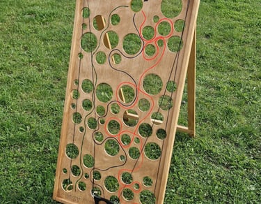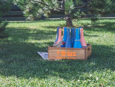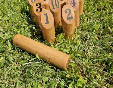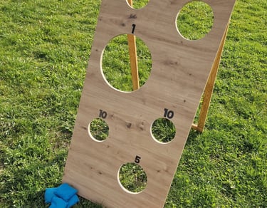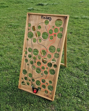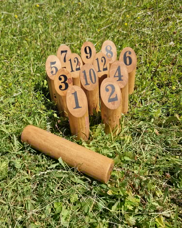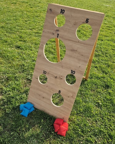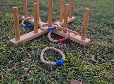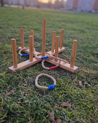 6 žaidimų komplektą sudaro: Cornhole, Labirintas „Korys“, Kaubojaus žiedai, Žiedynės, Molkky, Skylamūšis.